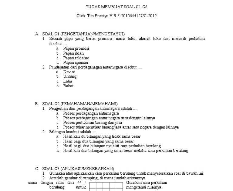 Guru sd smp sma contoh soal matematika c1 sampai c6. Soal matematika kelas 3 sd dan kunci jawaban penulis cilik. Demikianlah ulasan contoh soal penyajian data untuk level kognitif pengetahuan dan pemahaman. Contoh biologi soal c1 sampai c6. Soal untuk skb guru sd ada gak mimin?